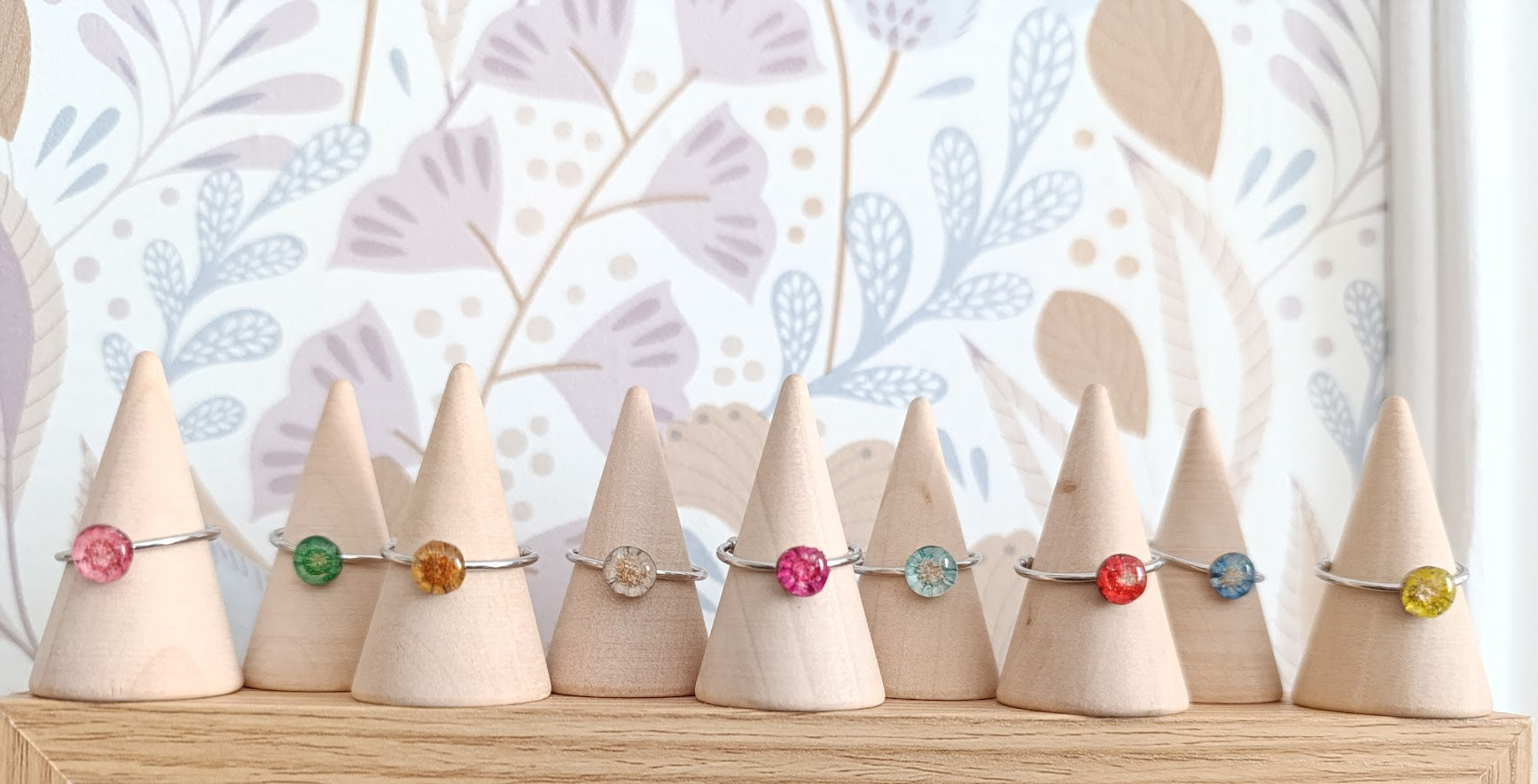 - Incrustées de vraies fleurs séchées, uniques à chaque pièce