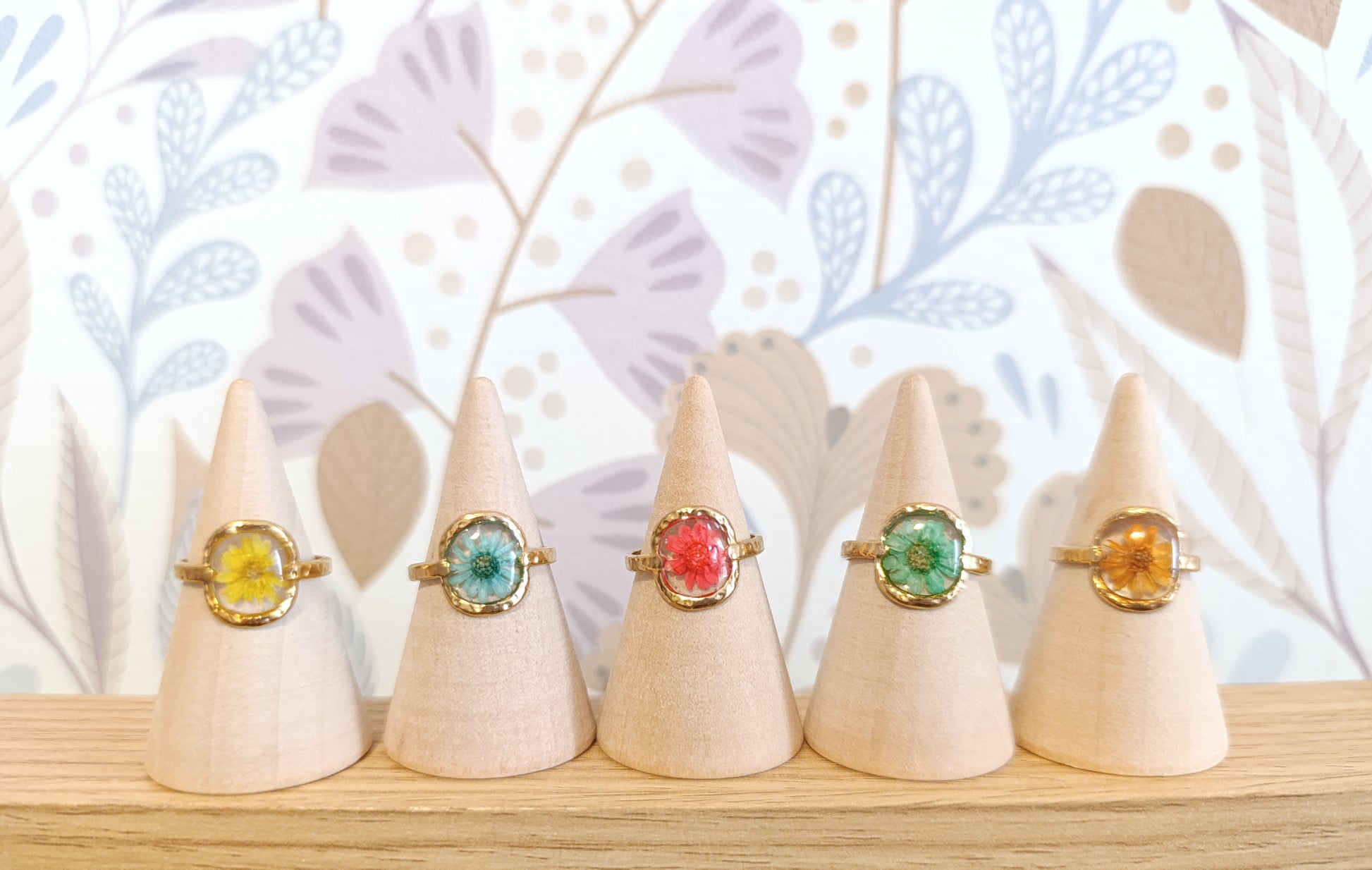 - Incrustées de vraies fleurs séchées, uniques à chaque pièce