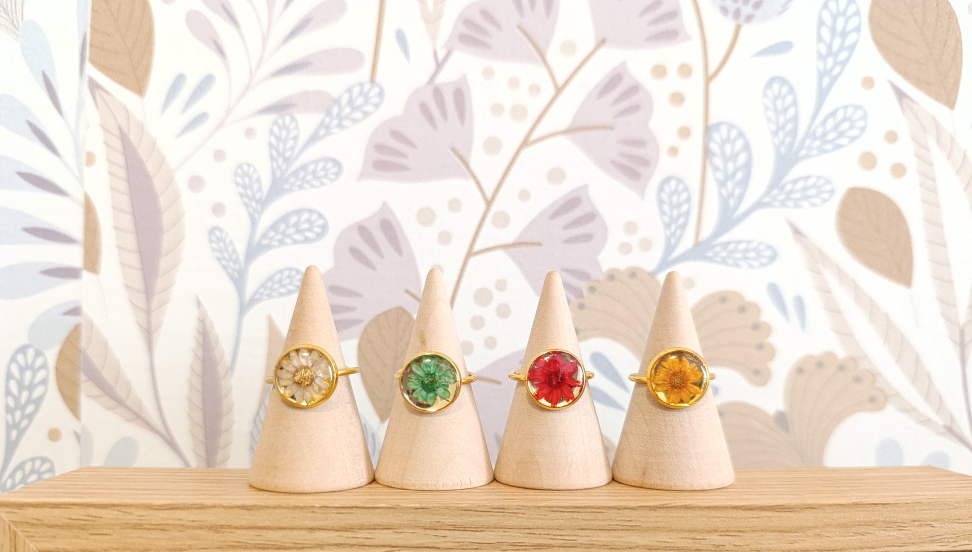 - Incrustées de vraies fleurs séchées, uniques à chaque pièce